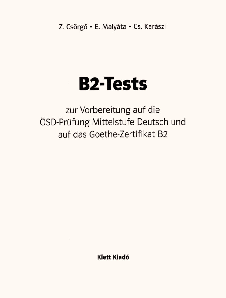 B2 Tests zur Vorbereitung auf die ÖSD-Prüfung Mittelstufe Deutsch und aus das Goethe-Zertifikat B2